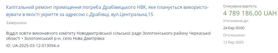 Слід нагадати, що з бюджету невеликої Новодмитрівської громади на будівництво, так званого "укриття" для школи у селі Драбівці, виділили майже 5 млн. грн.