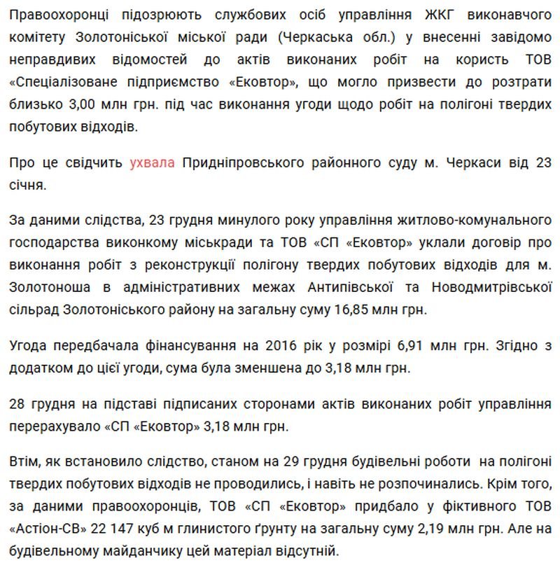 Є така одна давня історія у місті Золотоноша - це про шалену корупцію, зловживання службовим становищем та привласнення бюджетних коштів членами ОЗУ народного депутата України Войцехівського.