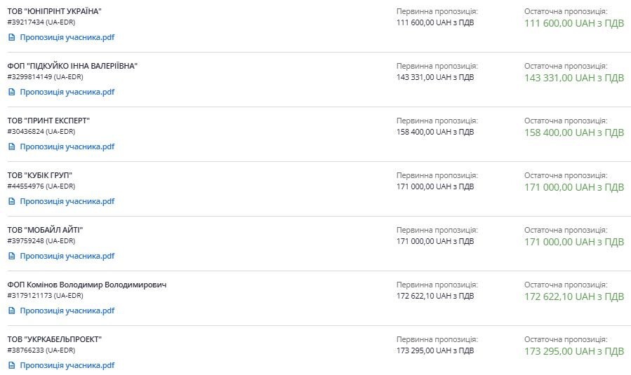Після того, як навколо тендера зчинився галас, на торги заявилося багато реальних учасників, які почали активно конкурувати між собою.